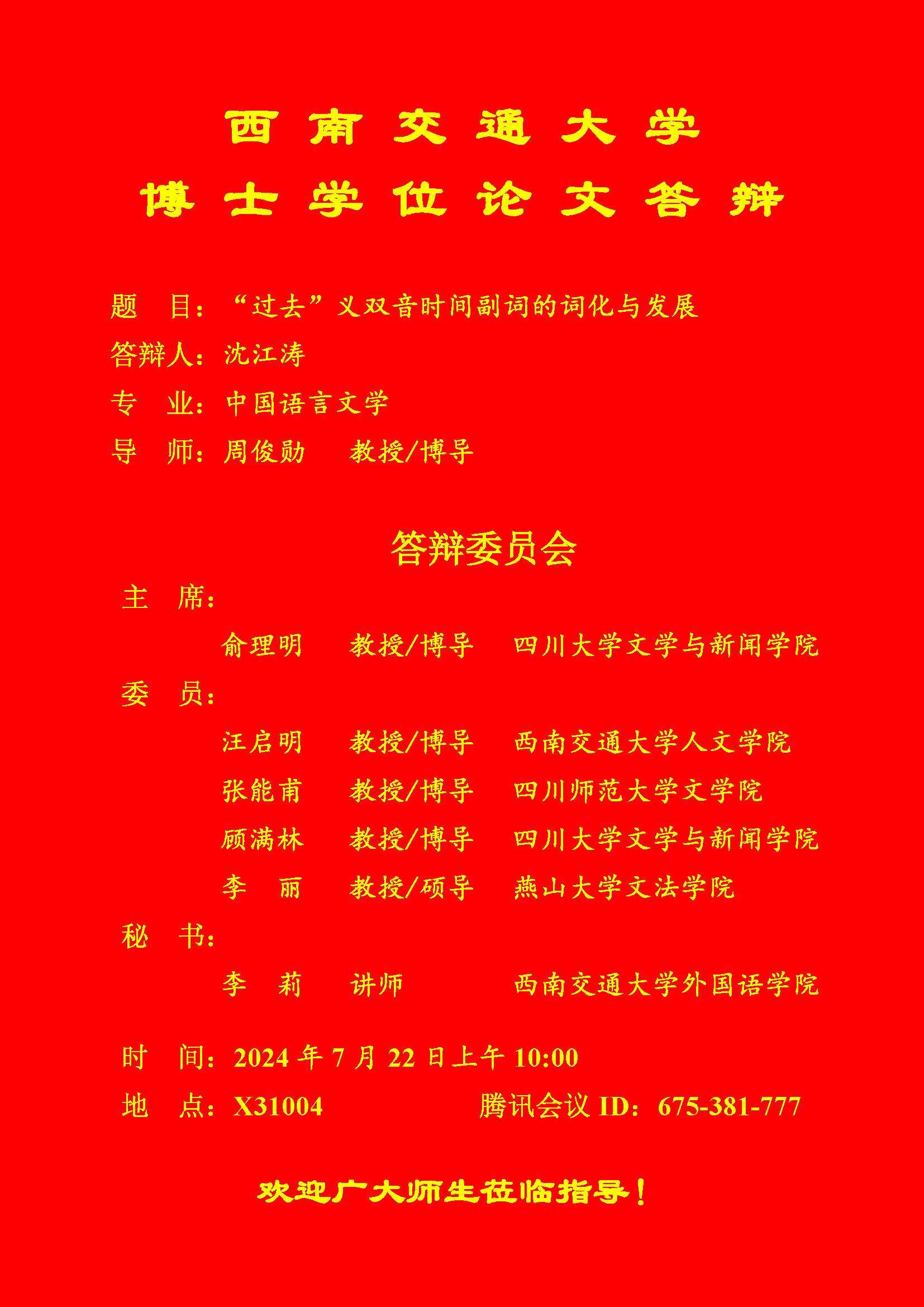 【博士答辩】色小说 博士研究生学位论文答辩海报