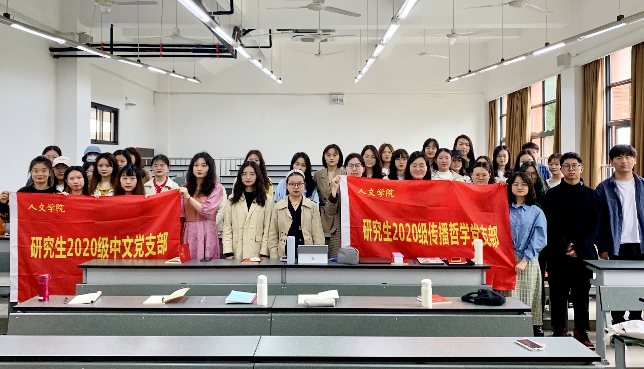 2021年4月22日下午,研2020级中文党支部和研2020级传播哲学党支部在X9136联合开展了马克思主义理论学习活动,会上两个支部共同学习了习近平新时代中国特色社会主义思想。本次活动由2020级中文党支部组织委员刘丹主持,两个支部全体成员参加。