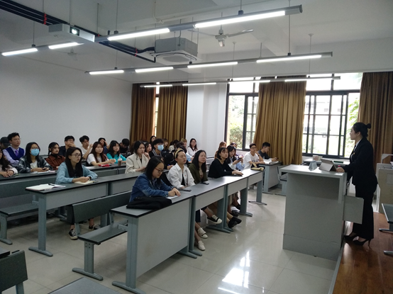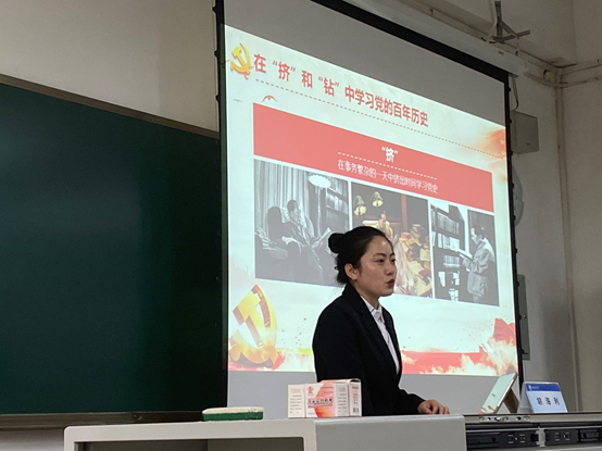 随后,胡海利博士为大家介绍了三点学习党史的方法。一、在“挤”和“钻”中学习党的百年历史。例如我们的伟大领袖毛泽东同志,他不放过任何可“挤”的时间来读书,并且每一本书都仔细钻研、认真记录,胡海利博士希望我们要学习毛主席的这种精神,并且运用到学习百年党史之中;二、在研读党史基本著作中学习党的百年历史。胡海利博士向大家推荐了四本党史读物《论中国共产党历史》《毛泽东、邓小平、江泽民、胡锦涛关于中国共产党历史论述摘编》《习近平新时代中国特色社会主义思想学习问答》《中国共产党简史》,并对每本书的内容、叙述方式做了详细的介绍,她建议大家将这几本书籍结合起来阅读,相互验证、相互补充,这能够帮助我们在学习党史中产生更加全面的认识;三、在社会实践中学习党的百年历史。胡海利博士提到,如果大家觉得从书本上学习党史有些枯燥乏味,不妨可以尝试知行合一,她建议同学们到革命博物馆、纪念馆等教育基地参加实践活动,在自己的亲身参与中感受党史、学习党史。除此之外,胡海利博士还提到学习党史还可以通过观看红色影视作品、歌唱红色歌曲等方式来实现。她向同学们推荐了《长征》《红星照耀中国》等影视作品,并且在现场播放了《歌八百壮士》,鼓励同学们从不同的渠道了解党史,结合书本的验证,全面而又立体地学习百年党史。