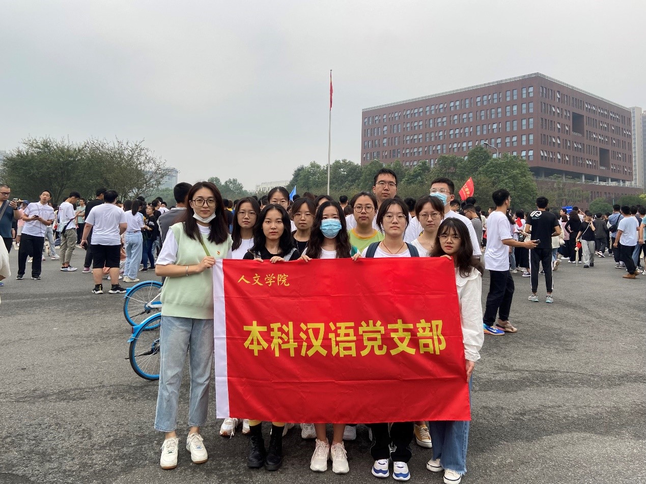 本科汉语党支部的党员同志、发展对象和入党积极分子自发组织前往犀浦校区升旗台进行观看。