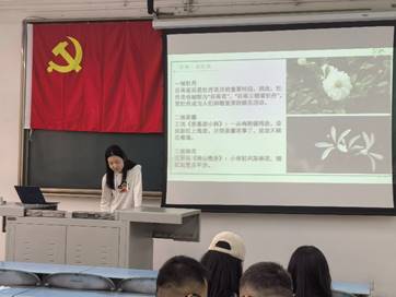 首先,由魏岚同志作开场白。她介绍“谷雨”的名字取自“雨生百谷“之意,是古代农耕文化对于节令的反映。随后,发展对象依次分享了喜欢的田园农耕诗词。龚昱如同志分享了范成大的《蝶恋花·春涨一篙添水面》,通过诠释词人清新的词句为大家展现了一幅明净的水乡春景图,传递出词中的淳朴宁静乡村人情。她评论道,这首词将景物与农事描写得自然连贯,充分表现出作者对田园生活的向往之情,是一篇很有特色的田园词作。