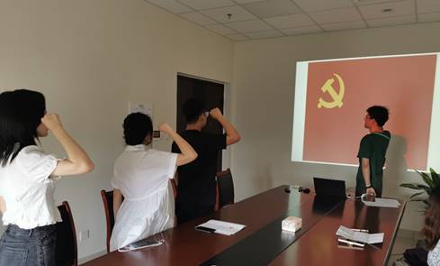 全体支部党员对各位新加入党组织的预备党员表示了热烈欢迎。在袁文林同志的领誓下,在场全体党员持立正姿势,举右手、握实拳,面向中国共产党党旗郑重宣誓。大会最后,袁文林同志寄语各位预备党员成为支部建设的主干和新鲜血液,推动本科广告党支部不断向前发展。