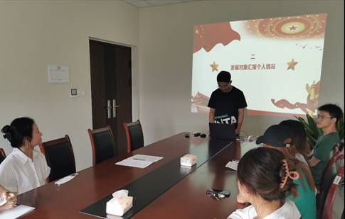 紧接着,发展对象吴佳媛、周梦雅和庄新洋同志详细介绍了自己对党的认识、个人入党动机、生活学习情况等。此外,三位同志的入党介绍人对发展对象的日常考察情况进行总结,针对性地对发展对象能否入党表明了态度。孙蕊同志认为吴佳媛同志认真学习党的知识,课余时间借阅关于党的书籍,努力丰富理论知识,不断向党组织靠近,符合入党条件。钟文钰同志认为庄新洋同志思想品德端正,团结同学,平时能够严格要求自己,在工作中发挥了带头作用,基本满足了成为中共党员的条件。白奇玉同志认为周梦雅同志在工作中肯于吃苦,甘于奉献,责任心强,符合入党条件。支委会其他同志结合发展对象培养联系人的看法向大会统一陈述了对三位同志的综合审查意见。