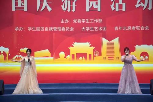 在随后举行的国庆游园活动中,支部多名成员加入国庆的欢乐氛围,参加文艺汇演。许桉源、从也、沈舒婷参与民族器乐表演《簇锦之川》,赵嘉怡、王艺潼献唱歌曲《青玉案·元夕》,支部同志们用实际行动献礼国庆华诞。