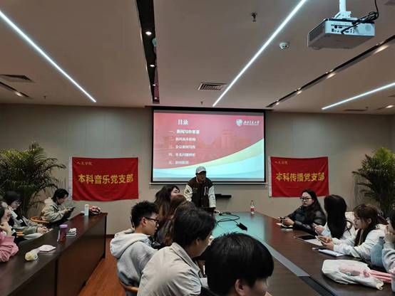 在杜建辉同志的分享结束后,音乐党支部学生负责人胡星妮同志表示,此次本科传播党支部和本科音乐党支部联合活动筹备良久,新闻写作是音乐党支部较为欠缺的能力,十分感谢本科传播党支部的支持。“我在刚刚的分享中很有收获,也希望党支部的同学们能够有所收获”胡星妮同志如是说。