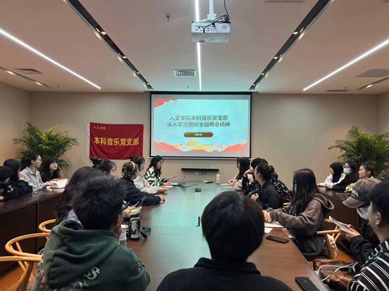 本科音乐党支部在X31004开展学习两会精神专题活动。本次学习由云怡熳、王伊伊担任主讲人,本科音乐党支部全员参加。