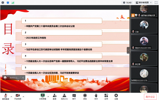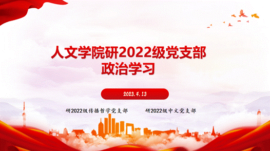研2022级传播哲学党支部联动研2022级中文党支部在腾讯会议召开支部政治学习会议。会议由研2022级中文党支部组织委员董思敏主讲,两个支部的党员同志及入党积极分子参加学习。