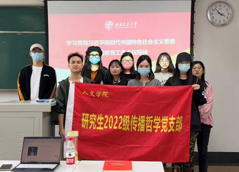 研2022级传播哲学党支部在九里校区J4220教室召开专题学习会,深入学习贯彻习近平总书记在中央主题教育工作会议上的重要讲话精神。本次会议由党支部书记王超主讲,全体党员参加学习。
