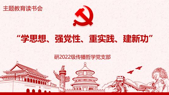 2023年5月26日上午11:30,研2022级传播哲学党支部于九里校区4304A教室召开“学思想、强党性、重实践、建新功”专题读书会,集中学习习近平总书记关于教育的重要论述。此次读书会由党支部书记王超主持,支部全体党员及入党积极分子参会。