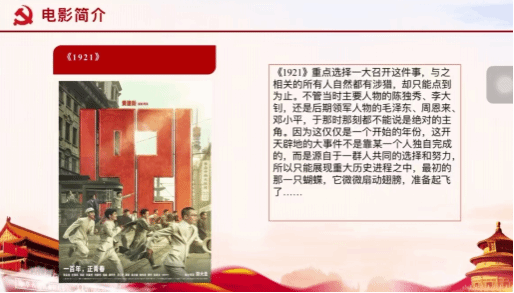 在集中学习结束后,季芷卿同志发表了自己的观影心得:“回望百年之前,一群青年满怀理想和拼劲,在国家和民族的危难关头挺身而出,为改变这个国家给出自己的解决方案,我们应当学习和继承百年前革命者的家国担当、理想信念,汲取继续前进的智慧和力量。”
