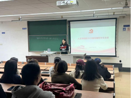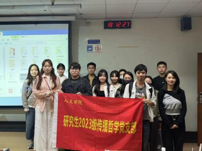 研2023级传播哲学党支部于九里校区J4223教室开展10月主题党日活动。本次会议由研2023级传播哲学党支部书记赵鸿绵同志主持,邀请四川省团校老师授课,支部全体成员到会学习。