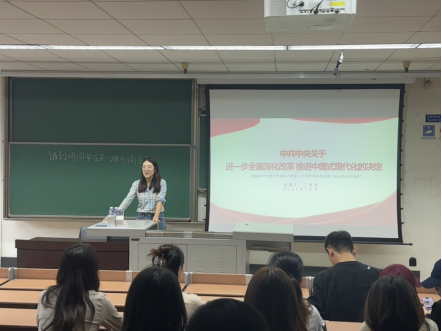 首先,由四川省团校老师带领大家学习党的二十届三中全会精神。在学习中老师与同学们重点探讨在当今时代下研究生如何就业等相关问题。当谈到如何打开工作局面时,老师分享自己“先就业再择业”的亲身经历,鼓励同学们在初入职场时保持开放心态,通过实际工作积累经验、了解行业,逐步明确自己的职业兴趣和定位,从而为未来更精准的职业选择打下坚实基础。