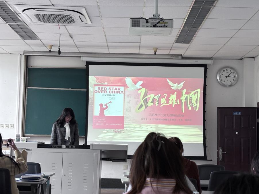 接下来,林思岐同志向大家分享了《红星照耀中国》。她对书籍的写作背景和主要内容进行了讲解剖析,并结合自己的理解和思考对书籍进行了评析,带领在场同志一同追忆了革命年代的历史背景和艰苦历程。