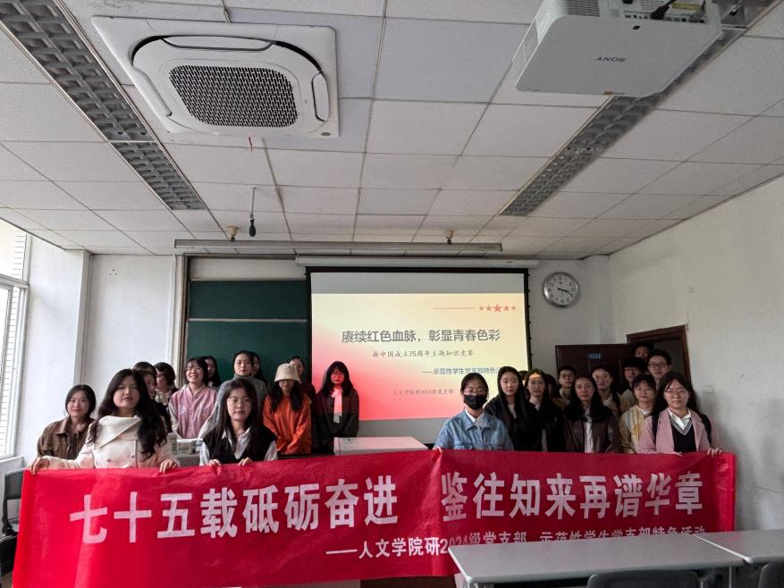 研2024级党支部联动研究生会临时团支部于九里校区J4222教室,开展了新中国史知识竞赛和红色书籍分享活动。本次活动为“七十五载砥砺奋进,鉴往知来再谱华章”校级示范性学生党支部特色活动的第二部分,研2024级党支部及研究生会临时团支部全体成员到会学习并积极参与活动。