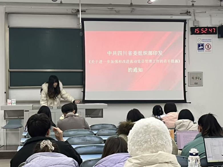 本科新传党支部在犀浦校区X2223开展12月主题党日活动。此次学习的主要内容包括:深入学习贯彻党的二十届三中全会精神,学习贯彻《关于进一步加强和改进流动党员管理工作的若干措施》,进一步学习了习近平总书记近期重要讲话、指示、复信、贺信精神,深入学习贯彻习近平新时代中国特色社会主义思想。本次活动由党支部成员成佩峰同志主持,支部成员共同参与学习。