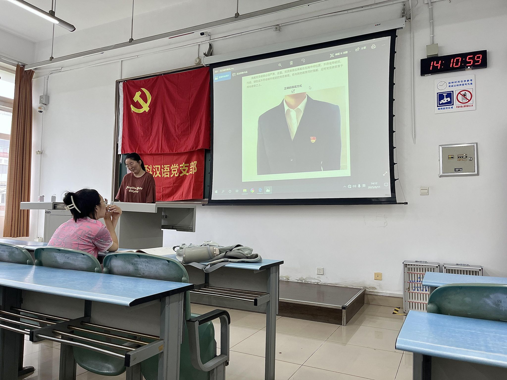 最后,邓丹黎同志带领全体同志学习了《中国共产党党徽党旗条例》,并强调了党员徽章的正确佩戴方式,随后学习了《基层党支部工作考核办法》这一重要文件。