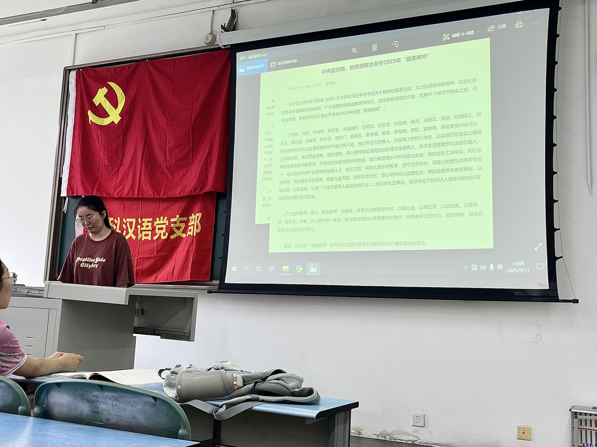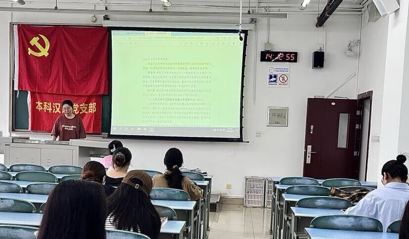 本科汉语党支部在犀浦校区X2326开展9月主题党日活动。主要学习内容有:习近平总书记在纪念中国人民抗日战争暨世界反法西斯战争胜利80周年大会上的重要讲话、2025年全国“最美教师”先进事迹、《中国共产党党徽党旗条例》以及《基层党支部工作考核办法》。本次活动由邓丹黎同志主持。
