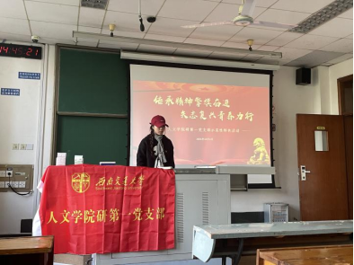 研第一党支部于九里校区J4322教室举办了“传承精神擎旗奋进,矢志复兴青春力行”纪念中国人民抗日战争暨世界反法西斯战争胜利80周年学习教育活动。在本次活动中,支部邀请了色小说