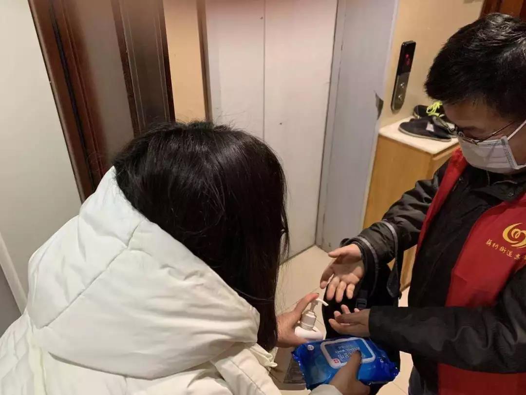“疫情就是命令,防疫就是责任。不能做志愿者进入防疫第一线,也要守好防疫最后一道门——为归家回来的志愿者父亲喷洒消毒液,保持健康卫生作息习惯,防疫从小事做起。”