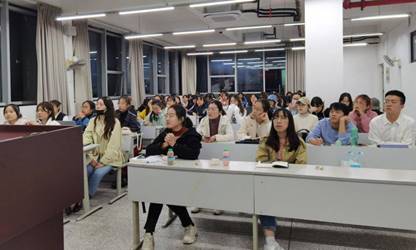 同时,六位同学分享的经验各有侧重、富有个性。陈萌萌同志从深造择校时需要考虑的因素与大家进行讨论,从而扩展到学校实力、学科潜力、导师影响力等角度。她还专门介绍了信息获取、材料撰写等方面的技巧,耐心细致地讲述了自己对古代文学、古典文献学和中国哲学方向的复习看法。徐东辰同学则从英语面试着手,向大家介绍了面试时可能会遇到的一些突发情况,建议大家做好心理建设。徐榕利同志用独具一格的自我介绍举例,为同学们生动地展示了“突出重点和亮点才能让人印象深刻”的道理,并强调在平时多加注意协调双学位、学生工作和科研竞赛等事务。崔洁同志选取了语言学方向的推荐院校和专业学者的著述进行介绍。现场的一些同学表示倍受启发:“听完学姐的精心分享,感触颇深。的确,对‘越努力,越幸运’的诠释求诸长期的坚持和付出。”闫晓凤同志讲道。