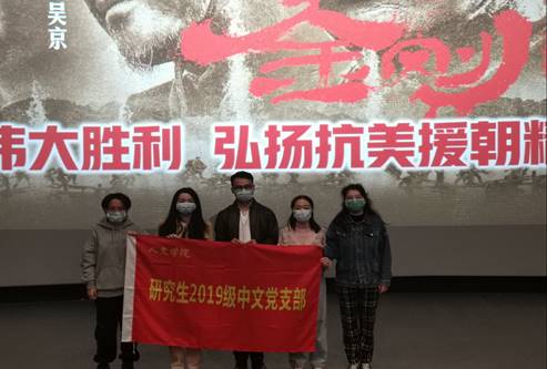 2020年10月29日,支部党员在学院党委组织下,观看了国家电影局纪念抗美援朝70周年重点影片《金刚川》,并在线下自主学习了习近平总书记在纪念中国人民志愿军抗美援朝出国作战70周年大会上的讲话。本次主题党日活动,党员们主要对习近平总书记重要讲话的学习领悟展开交流,并分享了自己的观影心得。