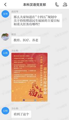 本科汉语党支部依托“学习强国”APP,进行习近平总书记在全国劳动模范和先进工作者表彰大会上的讲话精神学习和2021年政府工作报告的解读。通过本次线上讨论,支部同志们明确了劳模精神的内涵,并从经济政策、民生福祉等层面深刻认识了政府工作报告。