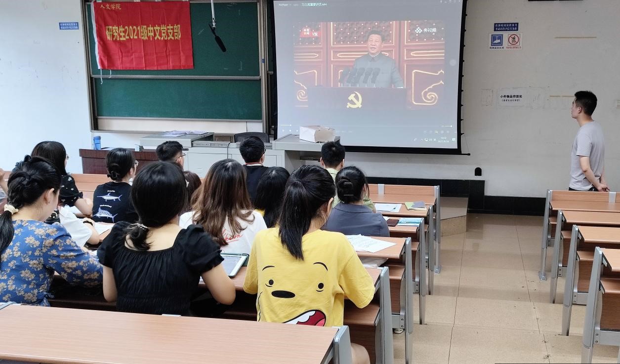 中文班党支部书记刘凯杰组织全班同学(22名党员在内的56名研究生)一起学习“七一”重要讲话精神,本次活动增强了班级同学尤其是党员不忘初心牢记使命的党性意识,还提高了班级的凝聚力和向心力。