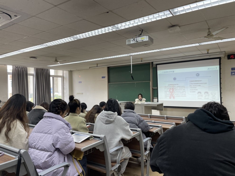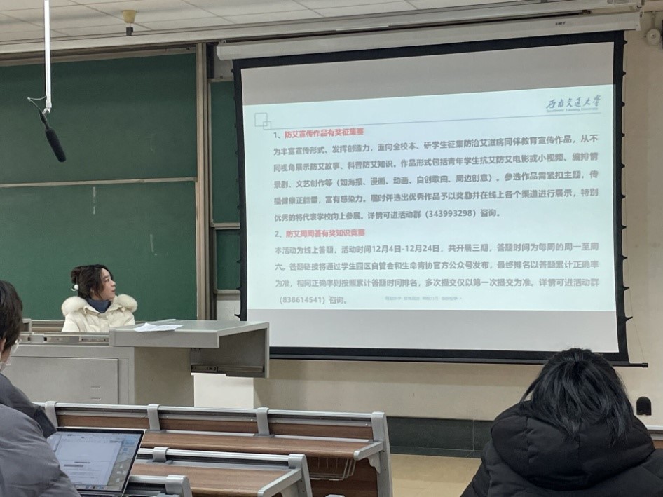 进行了防艾作品有奖征集赛和防艾周周有奖知识竞赛活动的宣传,鼓励同学们参与,最后同学们完成了青年大学生艾滋病健康教育效果评估调查问卷,收集了大家对艾滋病知识的掌握情况,并对艾滋病的相关知识进行补充和强调。