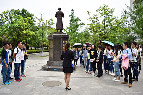 的团呢,希望大家可以愉快地听我讲述。”赵育汀微笑着说,并带领大家开始了今天的游园活动。在她看来,校园里的每一座雕塑都有自己的故事,每一段校史都有着让人沉醉的魅力。