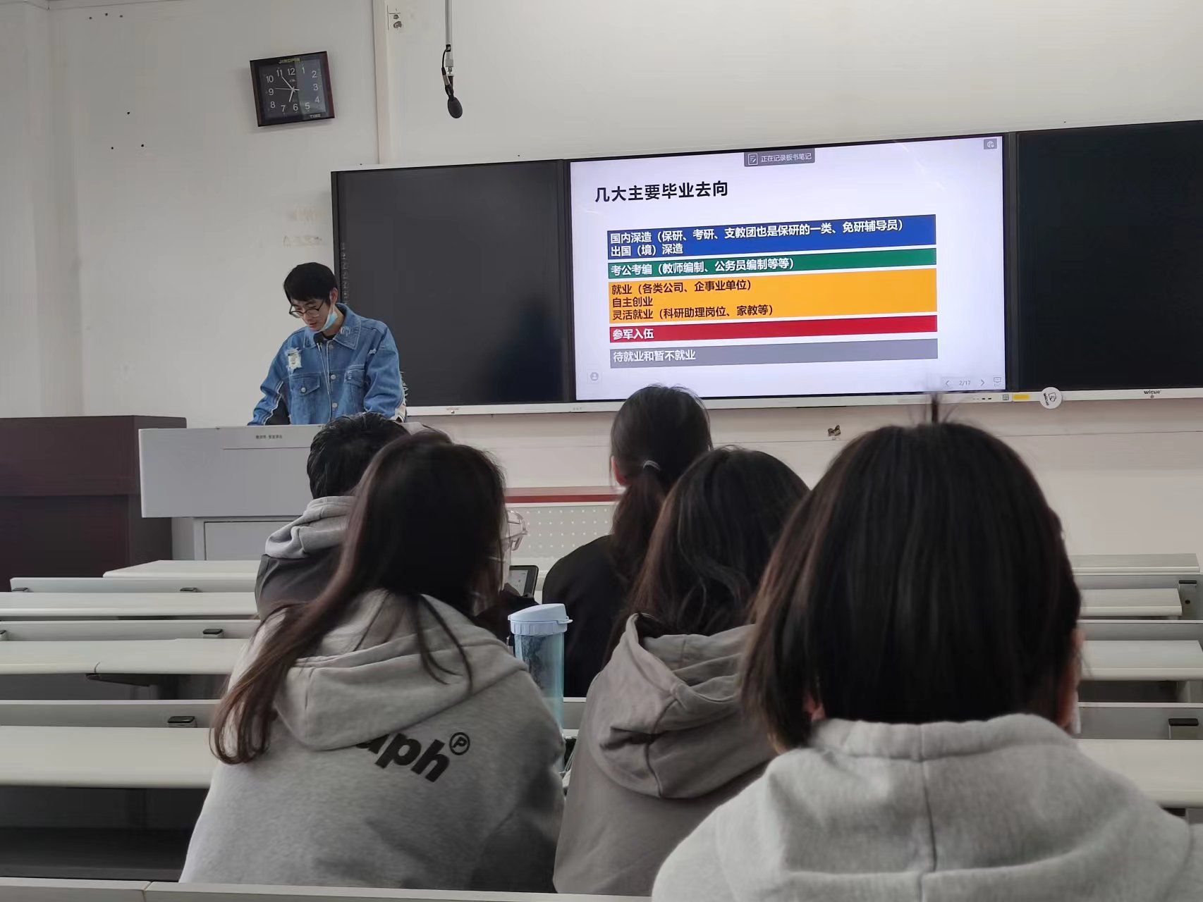 20级辅导员刘爽老师为本年级8个班的同学分别召开了就业相关工作的班会,让即将步入大四的学生能够更有方向感,目标更加清晰,对于学校的相关事务和时间线有所掌握,以期望对同学们有所帮助。