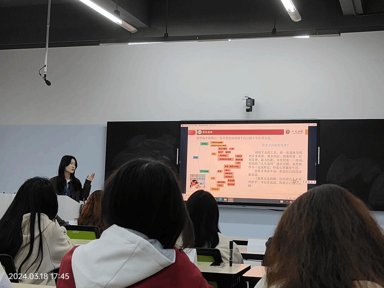 新闻传播学类2023-02班同学进一步了解大学生职业生涯规划知识、理解职业规划的重要性,激发同学们对自己未来的毕业思考,生涯规划导师杨子仪老师于3月18日下午17:30-19:00在X9203教室召开了名为“打开大学的正确方式”的主题班会。