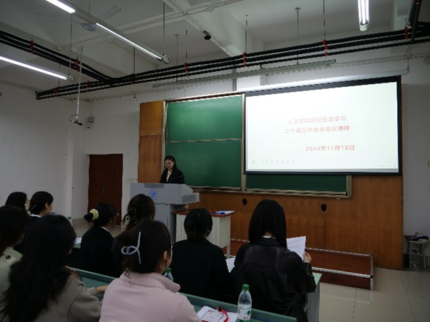 研究生临时团支部会于犀浦校区X4152教室开展了党的二十届三中全会精神专题学习会,本次专题学习由王嘉慧同志领学,研究生会全体团员青年参与学习。