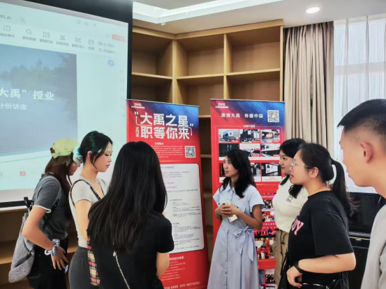 活动尾声,大禹传媒集团同步开启专场招聘会,为学生提供“一对一”简历咨询与投递机会。同学们踊跃提问并积极参与,围绕职业规划、实习机会等话题与嘉宾展开热烈交流。