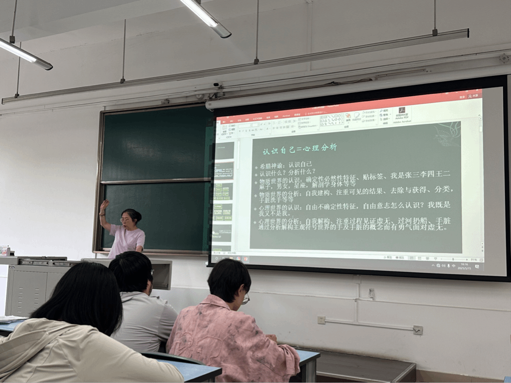 2024级全体同学积极参与。曾老师以其深厚的专业功底、温和而深刻的语言,从心理学专业视角出发,层层剖析自我意识的构建过程,引领同学们走进“认识自己”的复杂与真切。