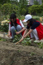 活动现场,农场专业人员走进田间,俯下身来,一边亲手示范,一边向围在身旁的同学们讲解花生与红薯的种植要点。同学们穿着统一的红色马甲,或蹲或站,专注倾听,眼神中满是求知欲。讲解完毕,大家便准备开始亲手栽种,一场充满生机与希望的种植实践拉开帷幕。