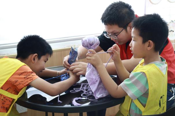 在实践环节中,志愿者带领孩子们亲手制作艾草锤。从填充艾草、揉捏定型到缠绕棉线,孩子们在志愿者的指导下逐步完成制作步骤,现场洋溢着欢声笑语。一只只小巧精致的艾草锤不仅让孩子们体验到传统手工艺的乐趣,更成为传递健康与祝福的载体。活动结束后,孩子们兴奋地表示要将亲手制作的艾草锤带回家送给长辈,传递孝心与温暖。