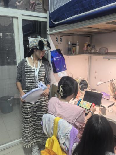 在卫生检查中,老师仔细检查了宿舍地面、书桌的卫生状况,对于干净整洁的宿舍予以了鼓励和表扬,对于卫生状况不佳的寝室提出了改善建议。
