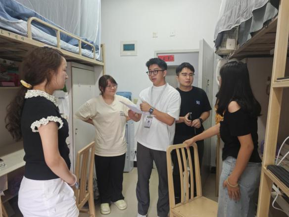 此次查寝工作重点检查了同学们的返校情况、宿舍的卫生情况以及电器使用情况。在查寝过程中,老师和同学们进行了亲切交流。老师仔细询问了同学们新学期的适应情况和生活需求,倾听并记录了同学们的建议和意见。同时,老师也提醒同学们在返校后要及时调整作息时间,养成良好的生活习惯,保证健康生活。