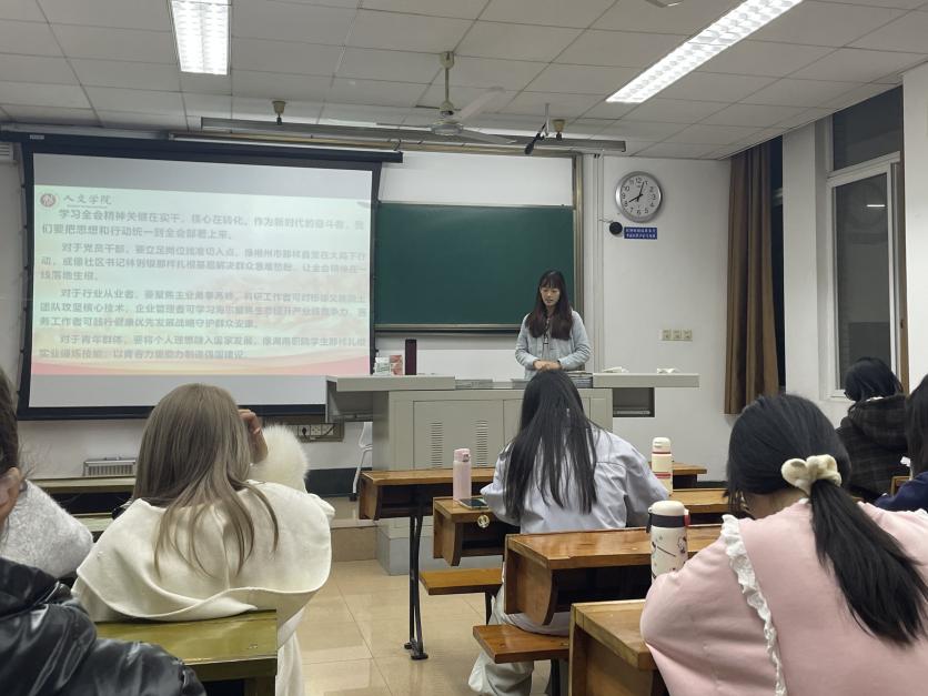 研究生会于九里校区J4321教室举办主题为“深学全会精神 勇担时代使命——党的二十届四中全会精神学习领读”的思想政治学习会,本次学习由赖秋蕊同学主讲,色小说