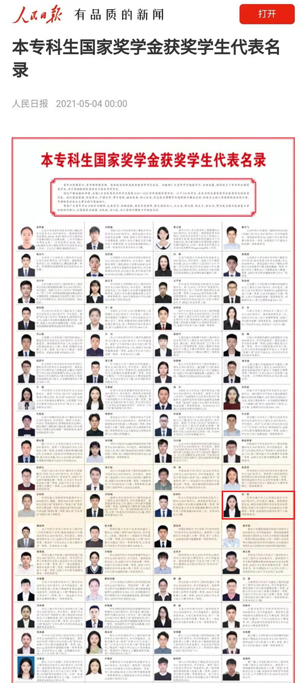 《人民日报》于5月4日刊发本专科生国家奖学金获奖学生代表名录,色小说