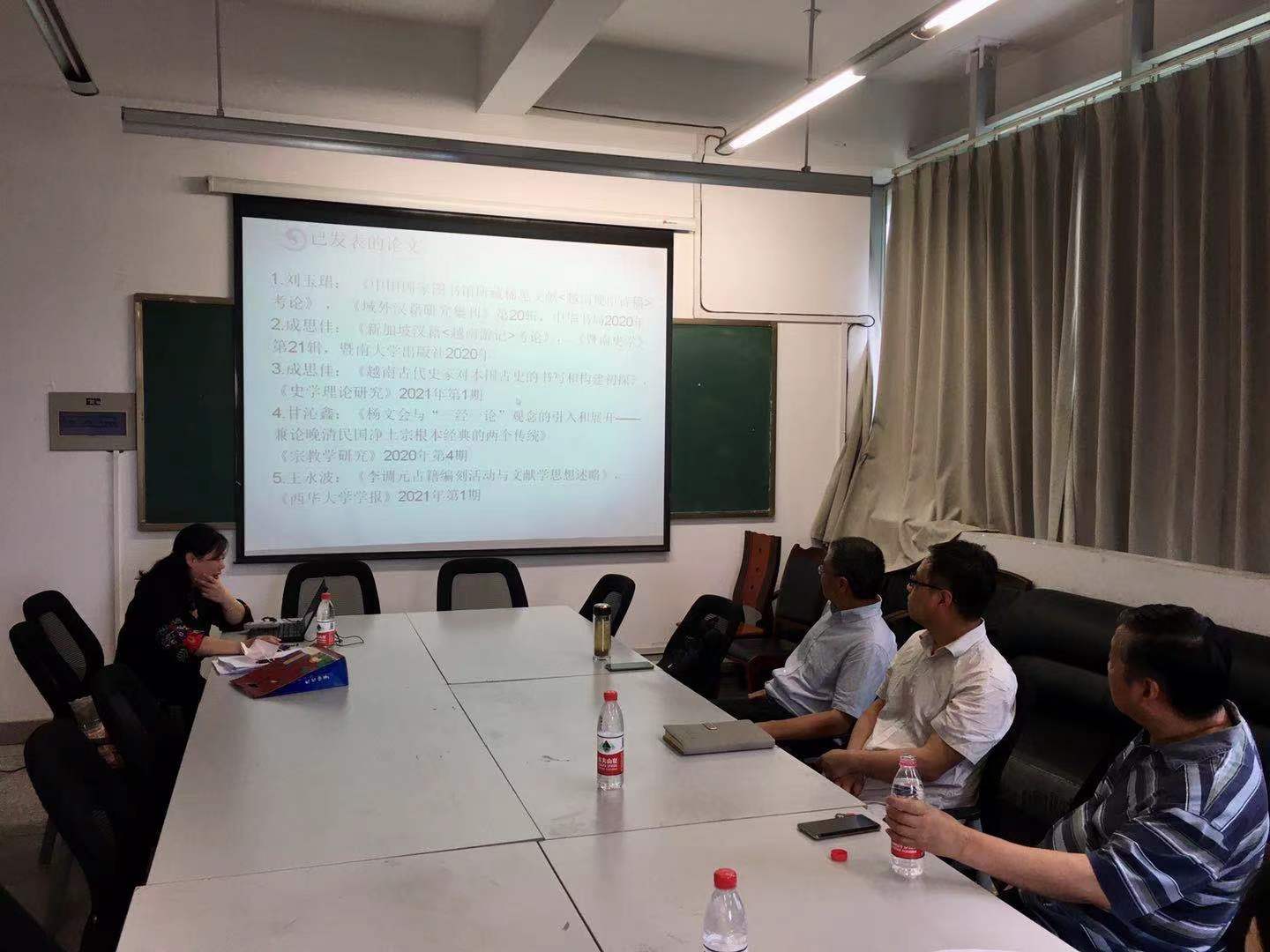 在答辩会上,刘玉珺教授向专家展示了自己主持的国家社科基金重大项目《中越书籍交流研究(多卷本)》的进展情况,包括每个子课题的进展情况,团队参加的国际性会议,项目组发表的论文等。周芳老师汇报了自己主持的全国高校古委会项目《叶燮诗文集校笺》的进展情况,包括参加的学术会议和出版的专著等。