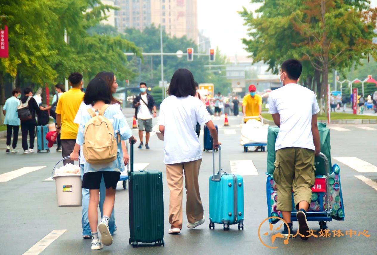 这个大家庭,这是所有迎新志愿者的初心。为了更好地迎接新同学,迎新工作者们借来了三轮车。新生班协姜骅峰同学和常鑫渝同学一趟一趟地搬运着新生的行李,给同学带去了很多便利。