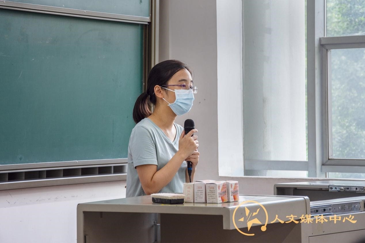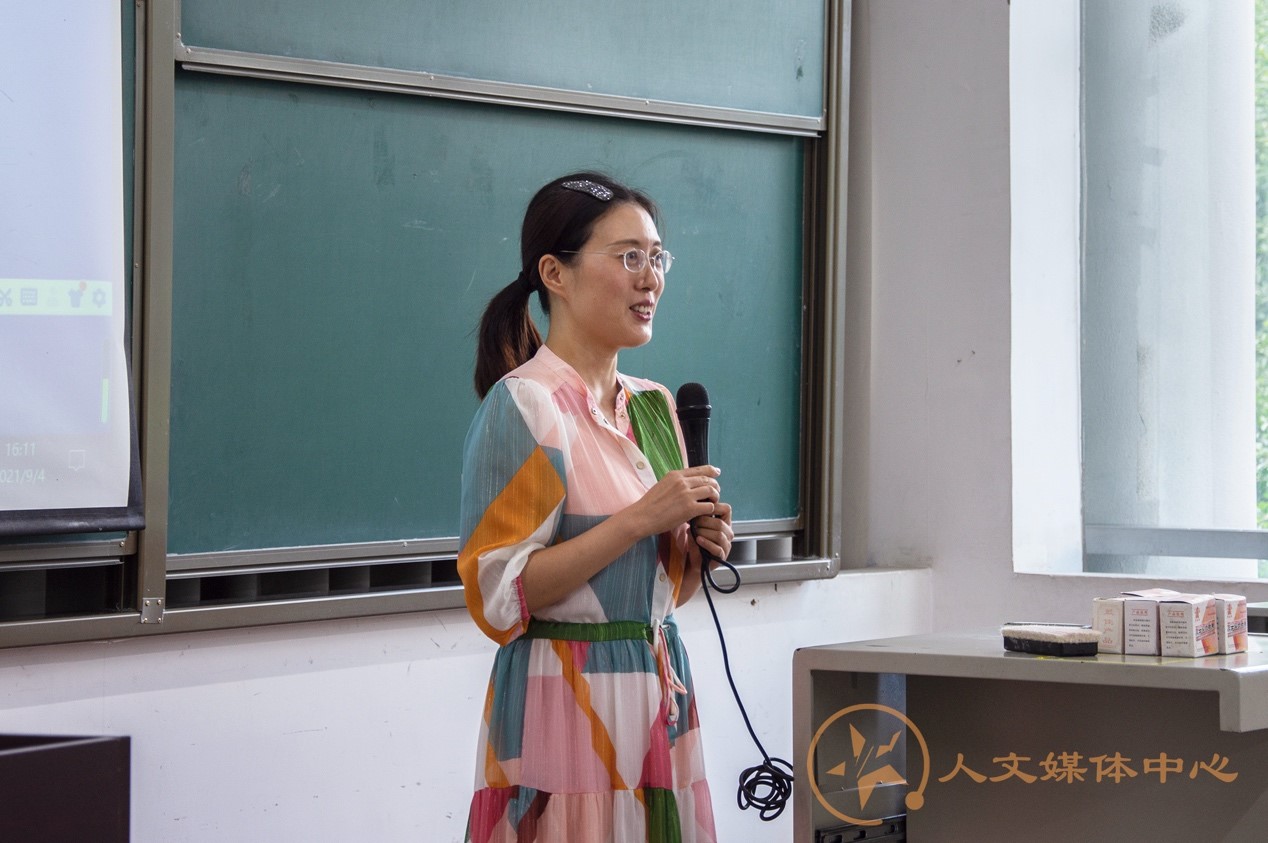 紧接着,大学生艺术团的黄原老师向各位新生简单介绍了大学生艺术团,并给每一位新生赠送了艺术团的书签作为礼物。黄老师表示大学生艺术团作为校内最大官方艺术社团,与音乐系紧密联系,为同学们创造了绝佳的表演平台,各位音乐系的同学必须参与其中。这对于各位同学来说既是约束,又是机会。最后,涂覃平与周尚琴两位班导师将各班学生分别安置在教室的前后排,相互进行更近距离的沟通。