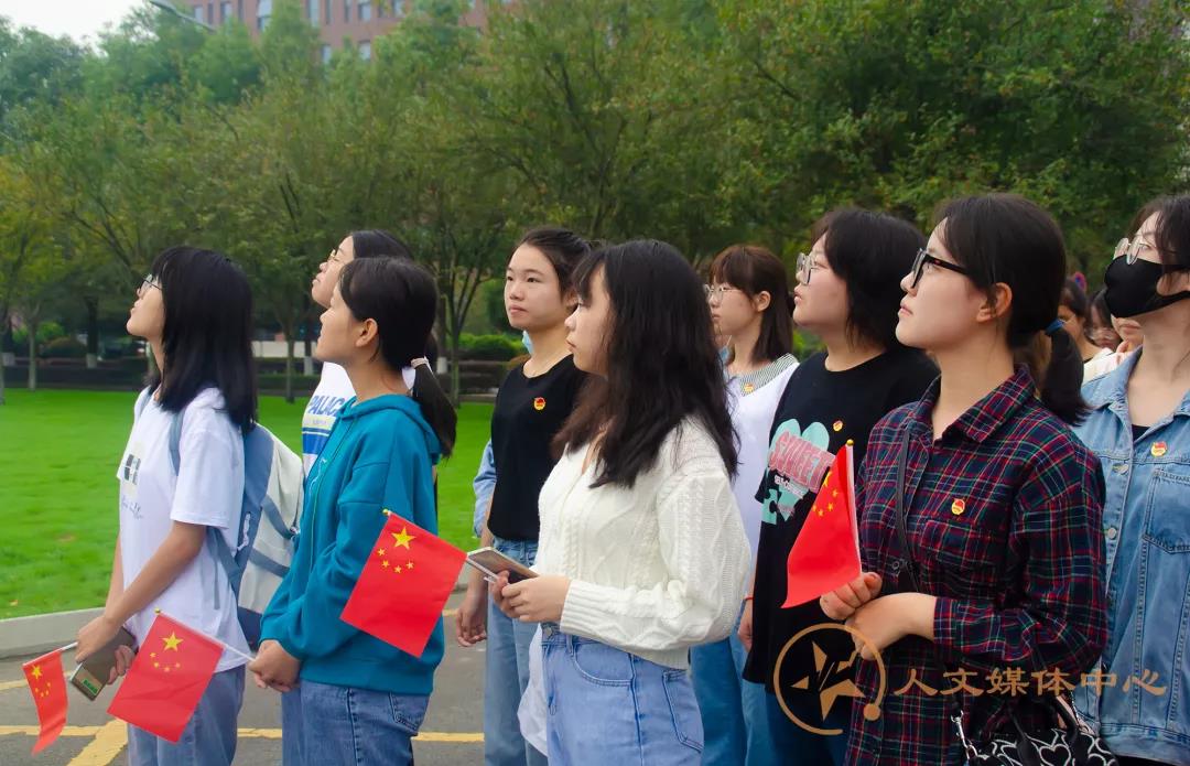 的同学们怀着对祖国母亲的热爱之情,来到升旗台参加升旗仪式,庆祝中华人民共和国成立72周年。