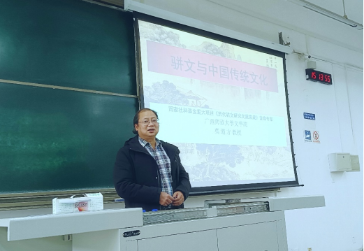 ,为同学们作了题为“骈文与中国传统文化”的讲座。本次讲座由中文系刘玉珺教授主持。