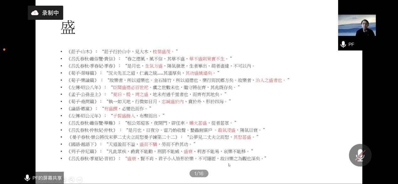 最后,郭教授以盛、延等汉字为例,讲解递训的应用。郭教授的列举十分精当,内容层层递进,与会师生深受启发。郭教授讲座期间,评论区实时互动,讲座的学术氛围浓郁,充分提现了国际高端论坛的初衷。