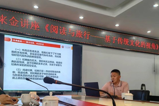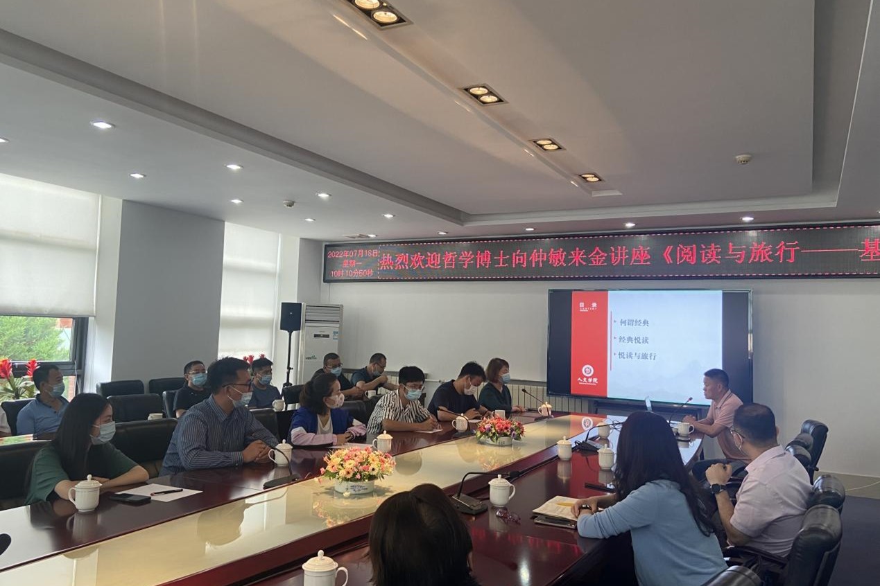在了解了企业发展历程后,向书记受邀前往金川集团会议室为集团职工开展关于传统文化的讲座。参会人员有金川集团文体中心主任喻昊、副主任贾琦以及文学协会会长、音乐协会会长、舞蹈协会会长等,向书记结合悦读与旅行,基于传统文化的视角开展了何谓经典、经典悦读、知行合一的分享,讲座结束后,金川青年诗人和文体中心副主任贾琪等人与向书记共同探讨交流当下生活中该读哪些经典以明智、以正心、以立德。文体中心主任贾琪与向书记交流院企合作,探讨挖掘企业创业过程中的人物故事和色小说相结合,共同开展民族艺术创作与演出。