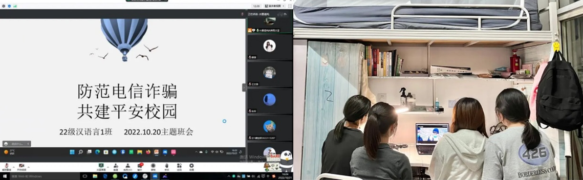 防范电信诈骗主题班会。全体新生班级开展“防范电信诈骗,共建平安校园”主题班会,各班紧密围绕主题,认真组织开展,充分利用QQ、微信班级群,常态化开展防范网络诈骗宣传教育,有效增强学生防范意识,提高防范能力,做到班级同学人人都能识骗、防骗,提高自我预防、自我保护能力。
