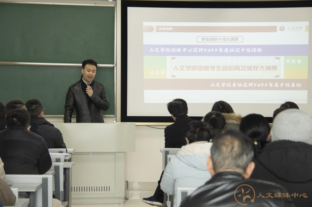 中国语言文学和新闻与传播学排名再创新高。2022年学院教师在高级别项目、高水平学术论文方面多有斩获。在人才培养方面,“双万计划”国家级一流本科建设专业稳步进行,人才培养质量保障体系进一步建立健全。在内部管理方面,学院治理力求规范,统筹谋划提升管理水平。谈到自己的工作感想,刘院长以“办公道事,做厚道人”表明自己的工作态度,并对学院全体教师及班子成员大力支持表示感谢。