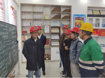 走进工作室,墙上展板上详细记录了潘从明工作以来所取得的工作成绩,展柜里陈列满了近些年他所获得的各类荣誉证书,白板上罗列着最近的工作计划和工作中所需的各种数学公式。在了解到潘从明从普通一线工人到高技能国家级工匠的故事后,向仲敏书记一行人对潘从明的坚守、执着、专注、创新精神表示了高度赞许。向仲敏书记向随行的老师们讲道:“这就是劳模工匠的引领作用。在今后的育人模式探索上,我们也可把传承工匠文化,弘扬工匠精神作为一个突破点,贯穿于人才培养的全过程之中。”